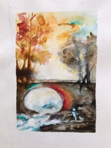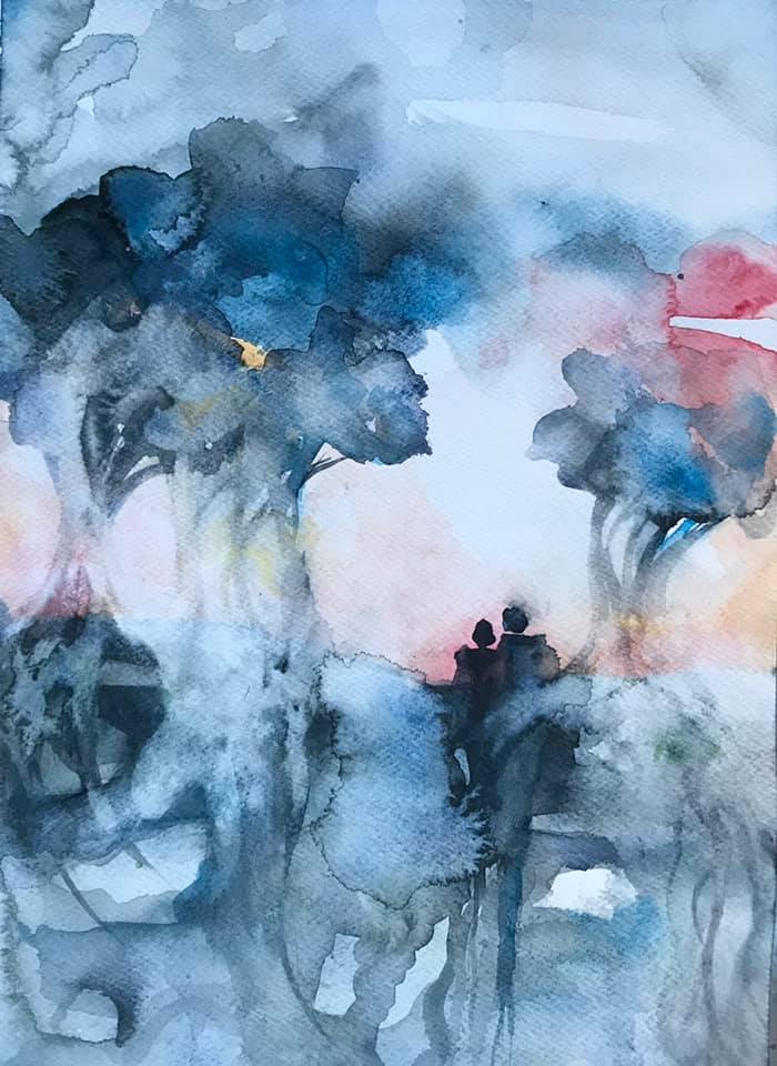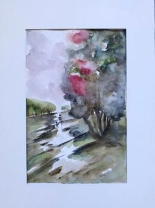 Ibland målar jag akvareller, ett spännande sätt att arbeta för man kan aldrig vara säker på hur vattnet och färgen blandar sig. Akvarell är svårt, det kräver både tålamod och snabbhet. Ibland ska pappret vara helt blött och ibland torrt. De akvareller jag visar på den här sidan är 40 cm * 30 cm och motivet 30 cm * 20 cm. Passande glasad ram i vitt eller svart med passepartout finns på bl a Claes Ohlsson.